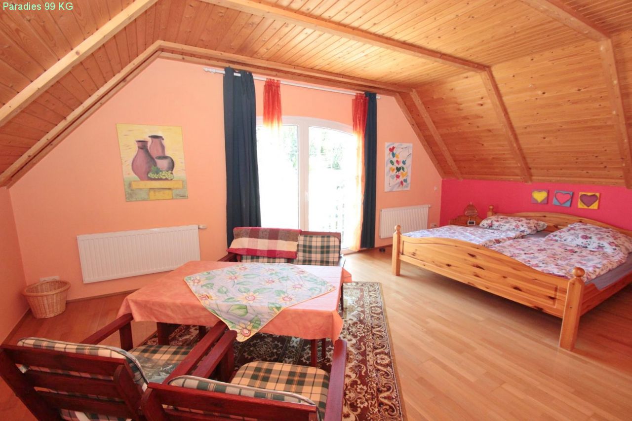nagyon csendes, panorámás helyen szép kilátással Hévízre és a környező dombos vidékre, kb. 1 km a gyógyfürdőtől és 5 km a keszthelyi strandtól. Keszthelyen bevásárlóközpontok.